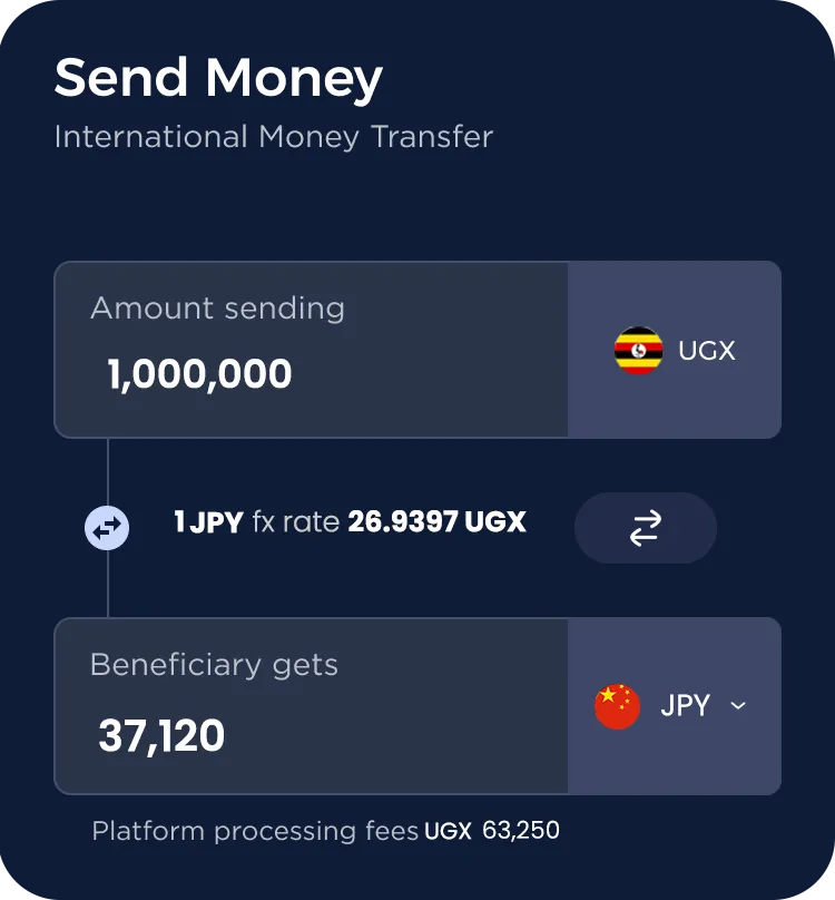 You will only pay a flat fee of UGX 63,250 for any transfer to Japan.